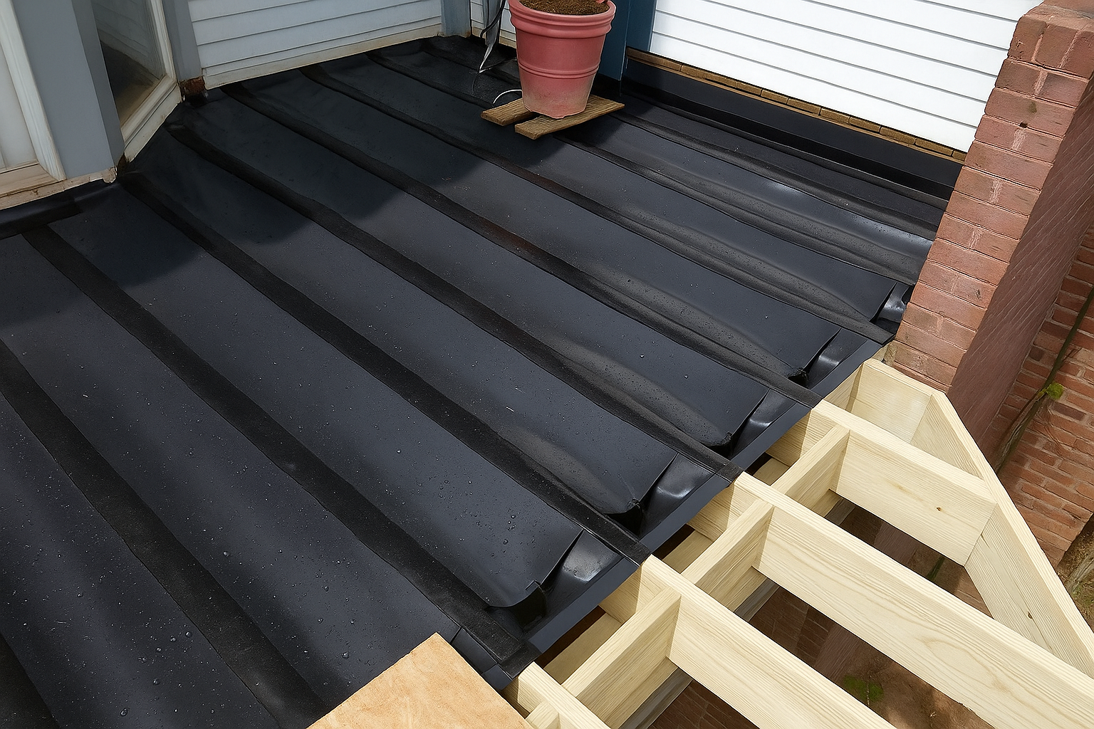 Attached to the underside of joists after the deck is built. They catch water that passes through the decking and direct it toward gutters. While more budget-friendly and easier to retrofit, they don’t protect the framing as fully as above-joist options.